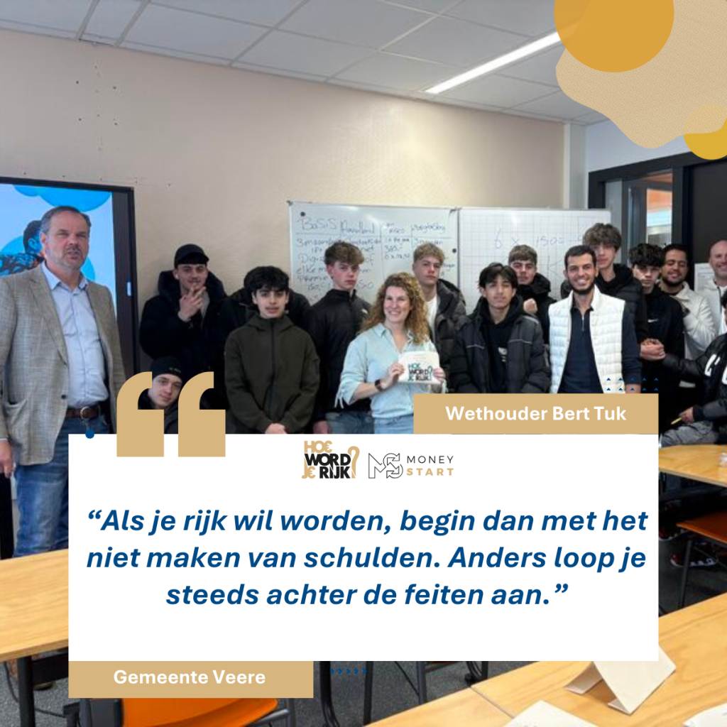 Onlangs gaven we les op een plek waar onze onderwerpen op een confronterende manier realiteit worden: justitiële jeugdinrichting Het Kwartier in Nijmegen. Onze gastdocent Winston Rose stond voor jongeren tussen de 12 en 25 jaar die daar verblijven vanwege uiteenlopende delicten, van fraude tot mishandeling. Juist in deze context werd duidelijk hoe belangrijk financiële educatie […]